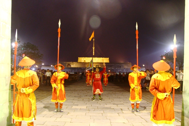 Tái hiện lại lễ đổi gác phục vụ du khách ngay đêm đầu tiên mở cửa Đại Nội