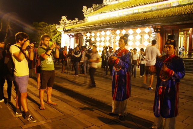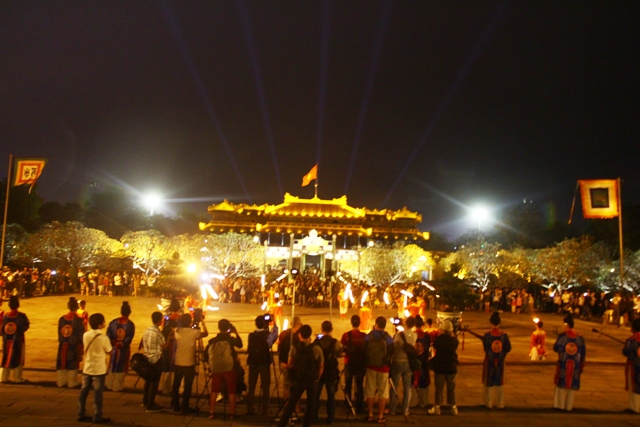 Khoảng 4.000 lượt người vào tham quan Đại Nội trong đêm đầu tiên này; trong đó, rất nhiều người đã có tuổi. Tại các điểm diễn ra hoạt động diễn xướng, như: Lễ đổi gác ở cửa Ngọ Môn, biểu diễn Nhã nhạc và cấm vệ quân luyện võ ở sân điện Thái Hòa, vũ khúc “Bát tiên hiến thọ” ở cung Trường Sanh… du khách dừng lại rất đông để xem và chụp ảnh. Bên cạnh đó, hiệu ứng ánh sáng nghệ thuật cũng “níu chân” du khách chiêm ngưỡng và chụp ảnh kỷ niệm tại nhiều điểm, trong đó ấn tượng nhất vẫn là cổng Ngọ Môn.