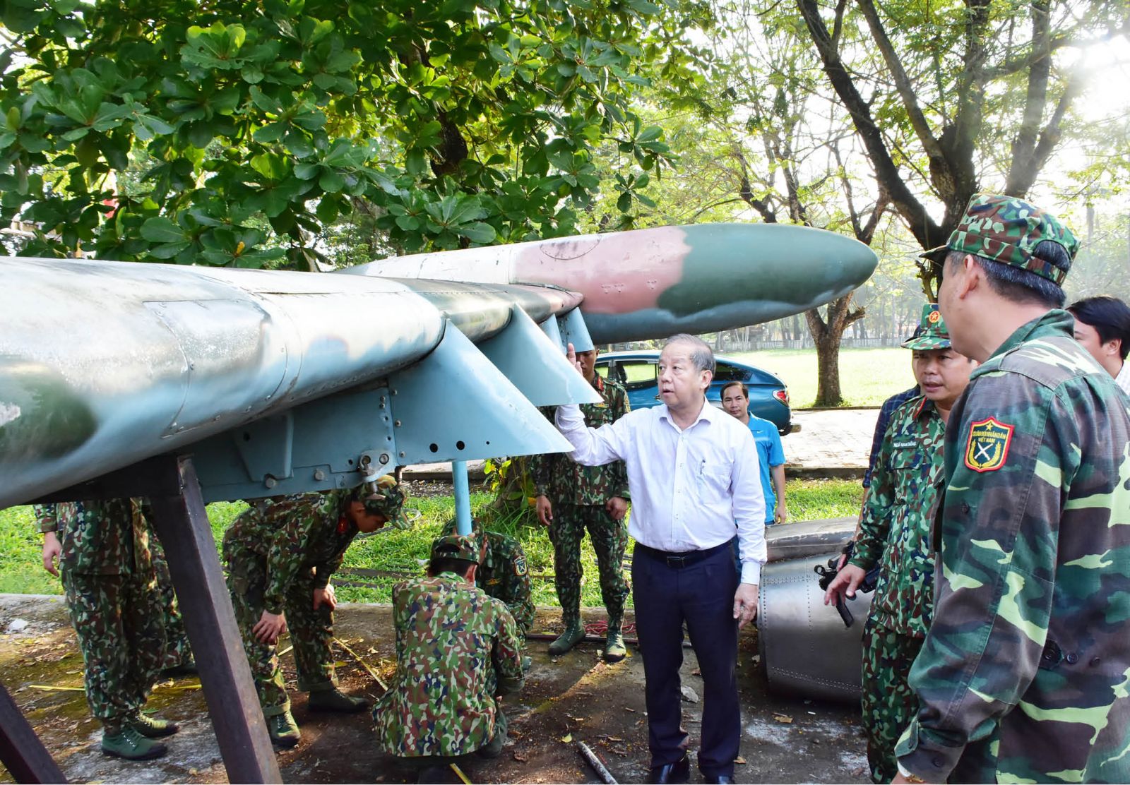 Chủ tịch UBND tỉnh Phan Ngọc Thọ khảo sát việc di dời các hiện vật ngoài trời tại Bảo tàng Lịch sử tỉnh. Ảnh: TB