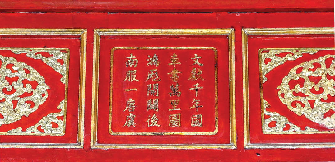 Giữa điện Thái Hòa có bài thơ nổi tiếng “Văn hiến thiên niên quốc” ca ngợi đất nước nghìn năm văn hiến: “Nước ngàn năm văn hiến/Đất vạn dặm hợp cùng/Đã mở mang lớn mạnh/Đường Ngu ở Nam phương”.