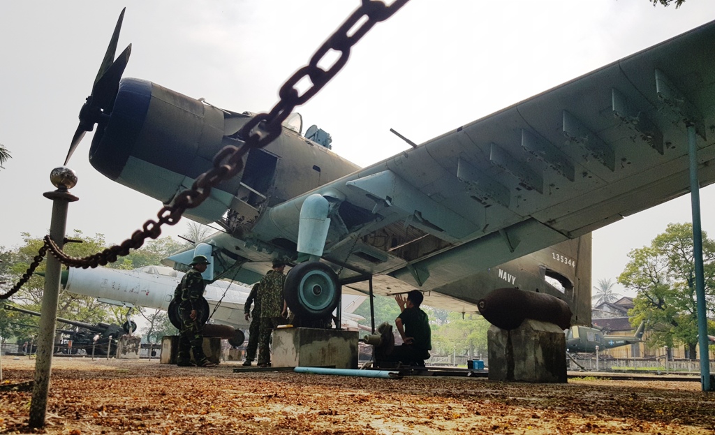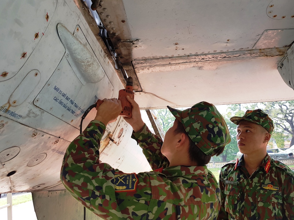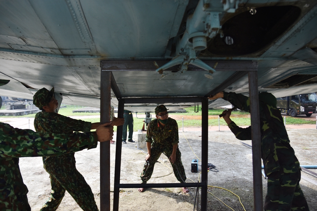 Clip cán bộ chiến sĩ tháo dỡ máy bay, xe tăng bên trong Bảo tàng lịch sử tỉnh để di dời về nơi mới