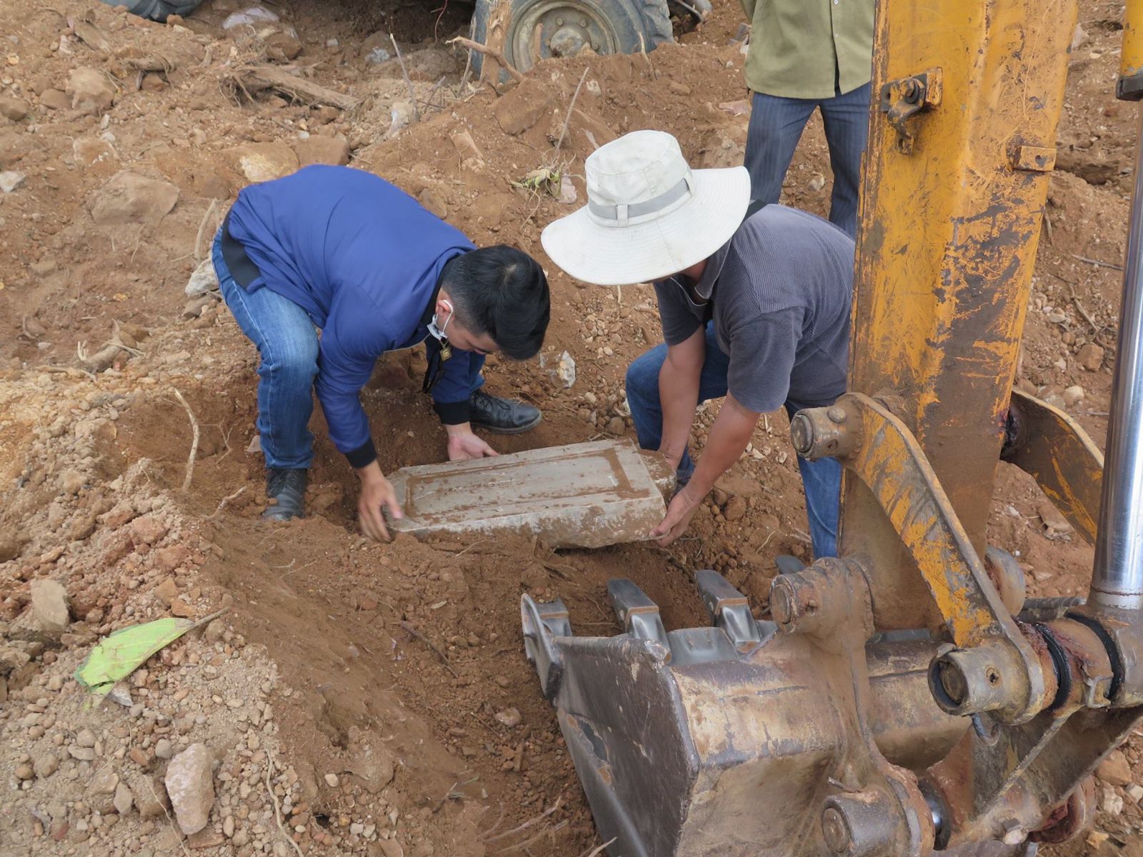 Hiện trường lúc tìm thấy bia mộ bà tài nhân