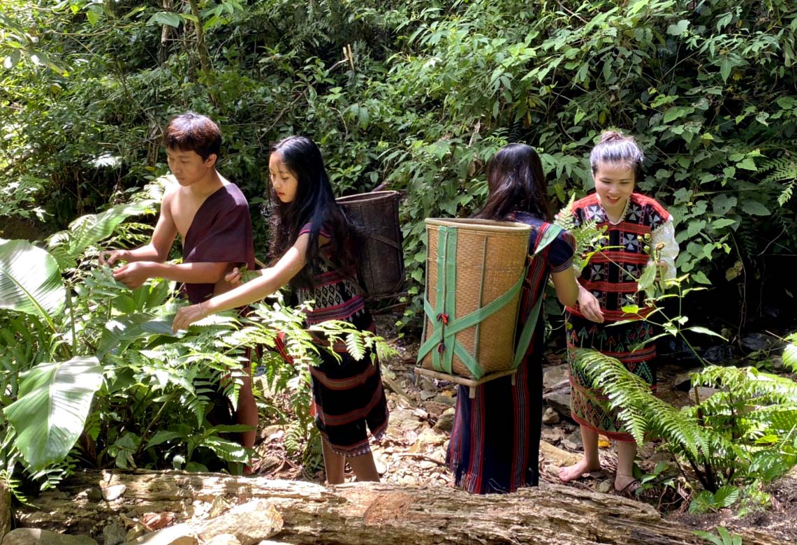 Các loại lá, củ, hạt được hái từ rừng. Một số du khách cũng thích thú theo chân người dân bản địa trải nghiệm