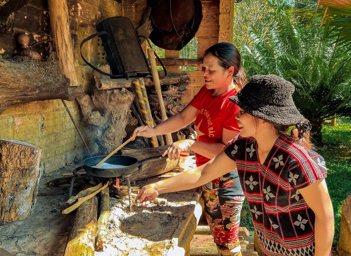 Bữa cơm đón khách luôn có cơm lam và boi p'ruc