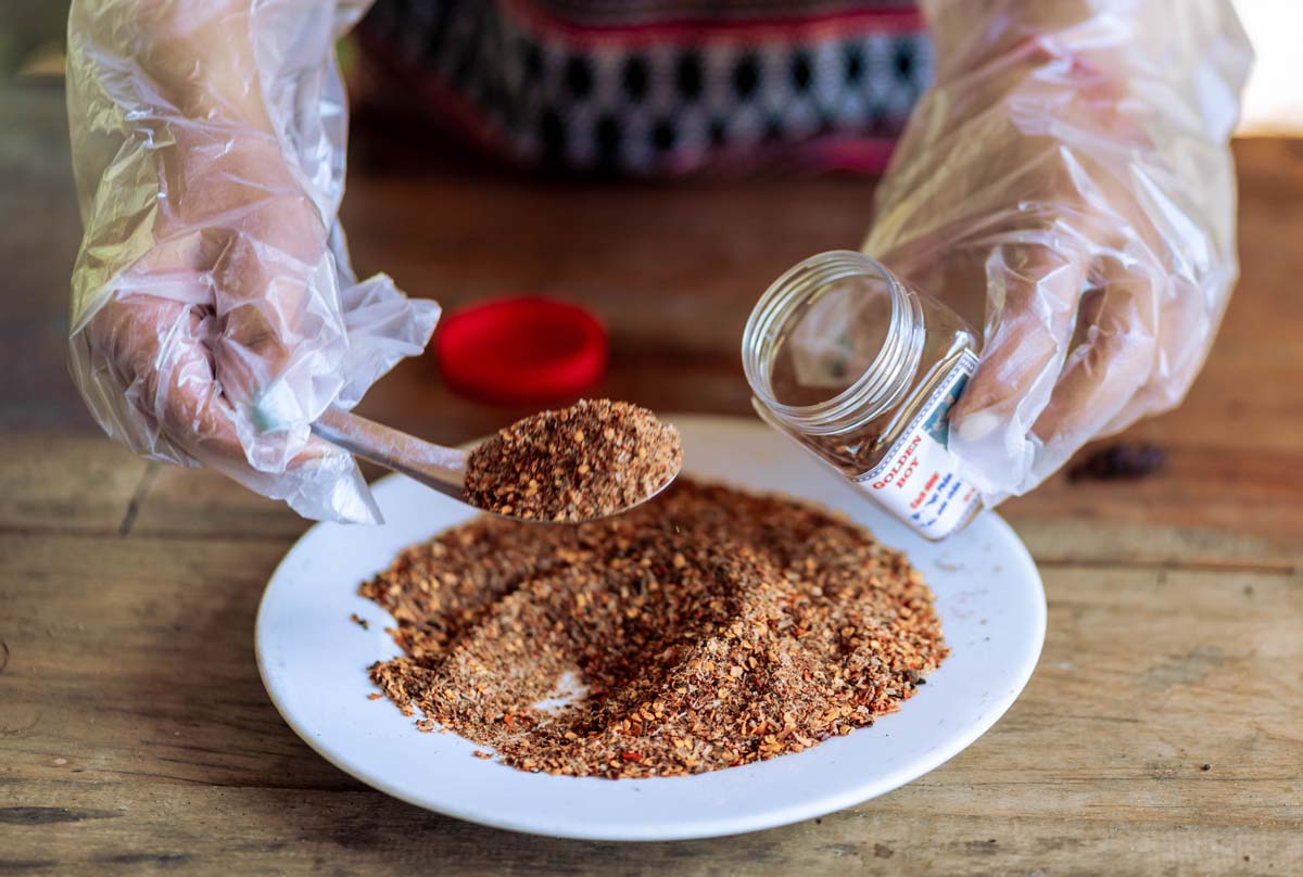 Hạt a’ soar được làm sạch, trộn cùng muối và các gia vị khác với tỷ lệ hợp lý
