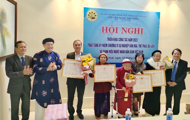 HNN.VN - Sáng 12/1, tại hội nghị triển khai công tác năm 2023 của Hội Văn nghệ dân gian Thừa Thiên Huế, bốn nghệ nhân được trao danh hiệu Nghệ nhân dân gian Việt Nam.