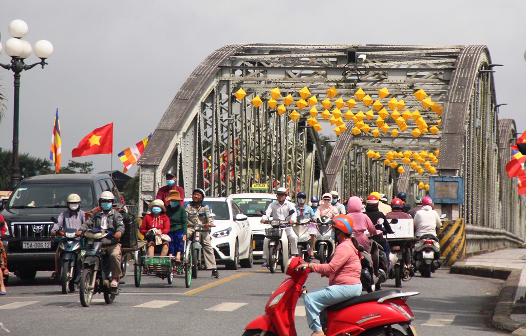 Cầu Trường Tiền được trang trí cờ, đèn chào đón tuần lễ Phật đản
