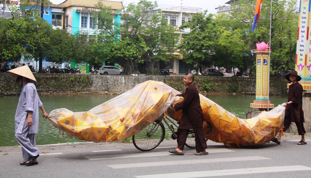Ngày 7/5, một ngày trước khi diễn ra tuần lễ Đại lễ Phật đản, các chùa thiết trí lễ đài, treo cờ, phướn, lồng đèn, biểu ngữ “Kính mừng Phật đản”. Một số chùa còn thiết lập vườn Lâm Tỳ Ni, thiết trí những hình ảnh về cuộc đời của Đức Phật để quý đạo hữu Phật tử tham quan, chiêm bái. Trước đó, Ban Tổ chức Đại lễ Phật đản Pl.2566-Dl.2022 đã thực hiện nghi lễ hạ thuỷ 7 đoá sen hồng xuống sông Hương.