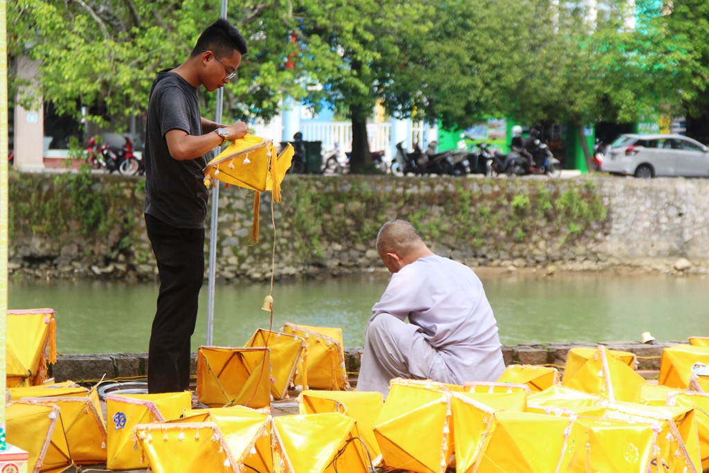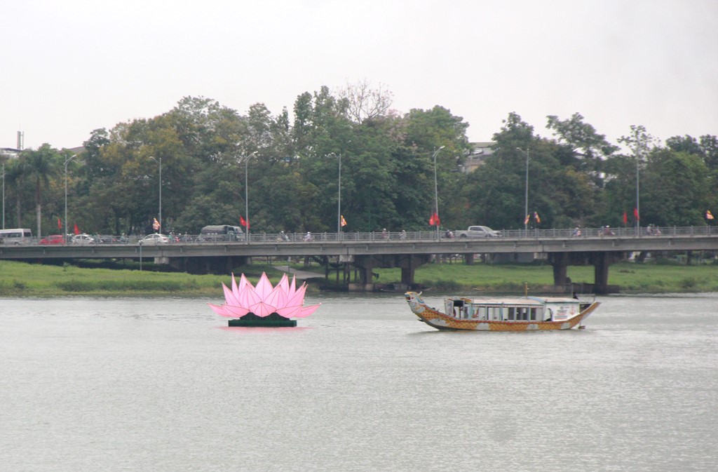 Trước đó, Ban Tổ chức Đại lễ Phật đản Pl.2566-Dl.2022 đã thực hiện nghi lễ hạ thuỷ 7 đoá sen hồng xuống sông Hương