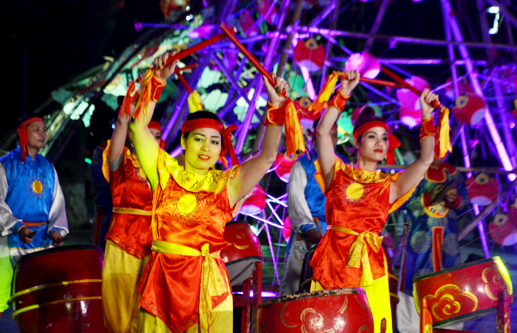 Mở đầu chương trình nghệ thuật, các khán giả đã được thưởng thức tiết mục “Trống hội” do các nghệ sĩ Nhà hát Nghệ thuật truyền thống Cung đình Huế biểu diễn.