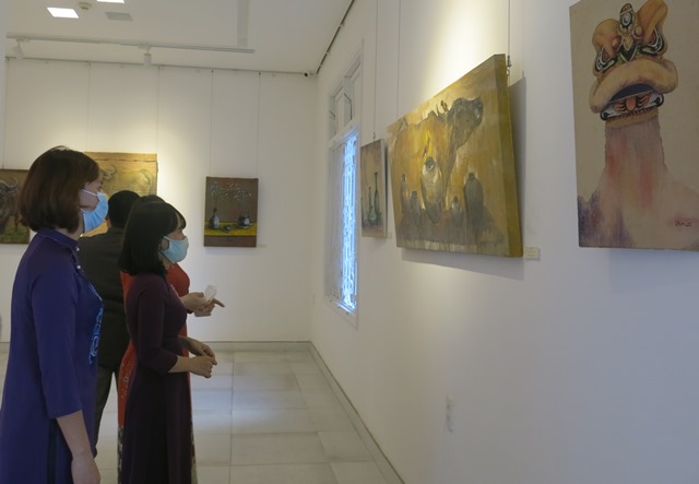 Triển lãm là dịp để các họa sĩ trẻ giới thiệu những sáng tác mới về mùa xuân và con giáp