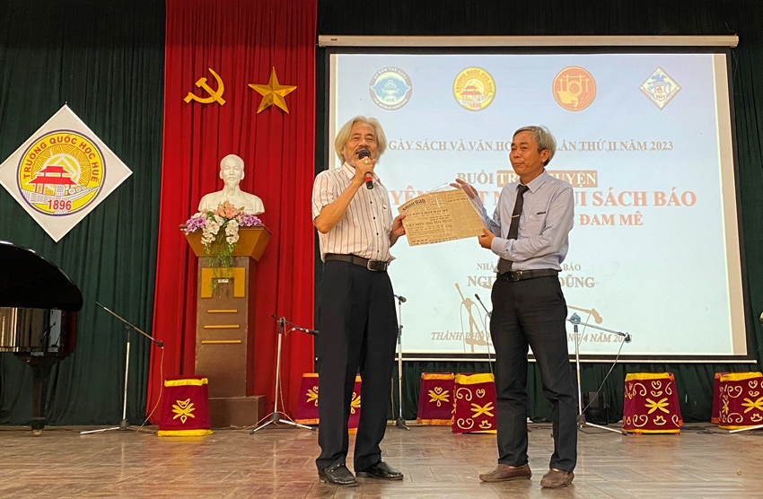 HNN.VN - Tiếp tục chuỗi hoạt động hưởng ứng Ngày Sách và Văn hóa đọc Việt Nam lần thứ 2 năm 2023, chiều 19/4, Trung tâm Bảo tồn Di tích Cố đô Huế tổ chức buổi trò chuyện “Xuyên suốt niềm vui với sách báo - lan tỏa tinh thần và đam mê” tại Trường THPT chuyên Quốc Học.