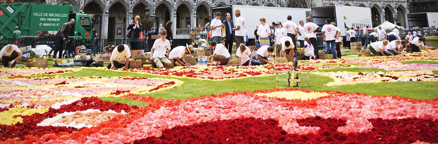 Nhiều người khác cũng đã tập trung ở Grand Place từ sáng sớm ngày 12/8 để xếp hoa ra theo mẫu. "Chúng tôi phải mất 2 năm để sáng tạo và lên ý tưởng cho một thảm hoa như thế này", ông Johan Aelterman, người vẫn tiếp tục duy trì truyền thống trồng hoa của gia đình và tham gia vào lễ hội thảm hoa này từ lần đầu tiên được tổ chức vào năm 1971 tiết lộ. Sau khi được hoàn thành trong sáng cùng ngày, khách du lịch từ khắp nơi trên thế giới đã đến để chiêm ngưỡng tác phẩm rực rỡ này. "Chúng tôi đến Hiroshima - nơi nổi tiếng với Công viên Hòa bình, nhưng chúng rất khác nhau. Chúng tôi không có những bông hoa đầy màu sắc như vậy, nên tôi thực sự rất ngạc nhiên trước vẻ đẹp của tác phẩm này", du khách người Nhật Bản Misa Kitatani cho biết trong chuyến thăm Brussels cùng với gia đình.