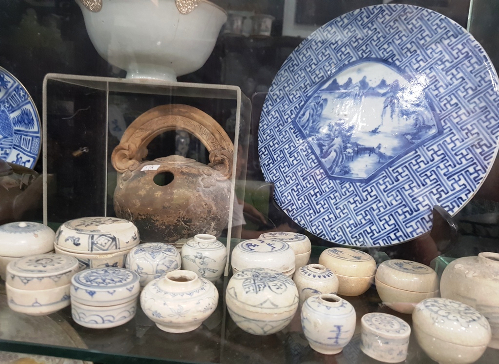 Nói đến bộ sưu tập của anh Hoàng không thể không kể đến đồ gốm được trục vớt từ dưới lòng sông Hương