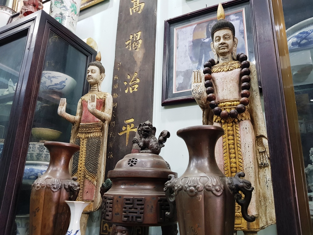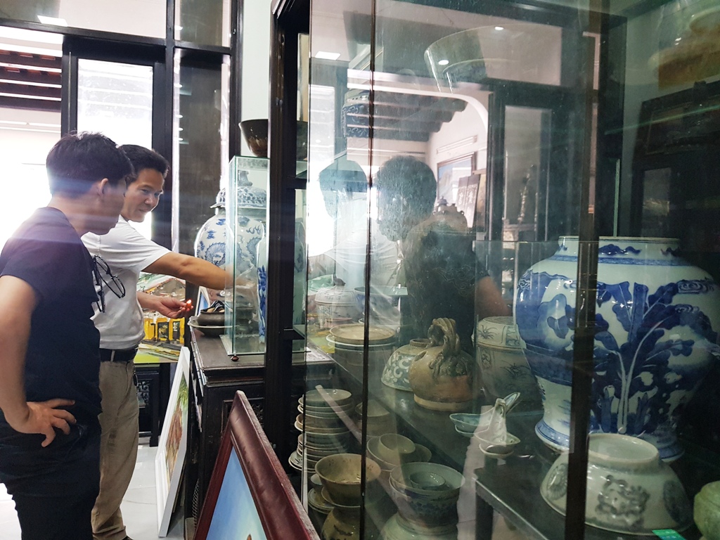 Trong không gian trưng bày của mình, hiện nay có hàng ngàn món đồ có thể kể đến như đồ sứ, đồ gốm, đồ gỗ… có niên đại hàng ngàn năm tuổi. Đây cũng là địa chỉ mà người sưu tầm, đam mê cổ vật và du khách lui tới thường xuyên để chia sẻ, trò chuyện với gia chủ.