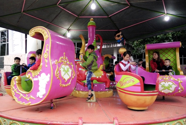 Những trò chơi như: đạp xe đạp, lái ô tô, đi tàu điện, đu quay… dường như thỏa lòng mong ước của những khách hàng nhí. Thỏa sức vui chơi, gương mặt bé nào cũng rạng rỡ, tươi cười. Ngồi trên chiếc xe điện màu hồng lấp lánh, bé Thục Linh mắt tròn xoe, cười chúm chím: “Con thích được ba mẹ đưa đi chơi công viên lắm. Con ước chi ngày nào cũng là Tết…”.