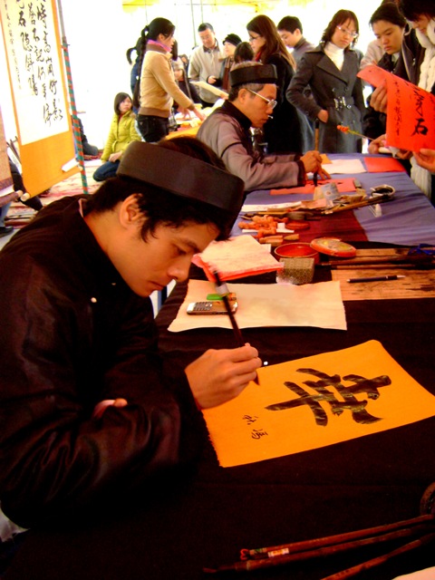 Từ 23 tháng Chạp đến hết ba tháng xuân, dường như nhà nào cũng đi hội chợ, tham gia các hoạt động viết, xin và cho chữ (thư pháp). Sở dĩ như vậy là để mỗi người có thể tiếp thu được nhiều kiến thức, dạy bảo con cháu truyền thống hiếu học, giao lưu bạn hữu và qua từng con chữ tốt lành có thêm sự may mắn, thuận lợi. Dọc đường thường thấy nhiều gian hàng tranh chữ mà tác giả là những nhà nho, sinh viên Hán Nôm, học giả và cả du khách. Phàm những ai viết được chữ đẹp thì đều có thể cầm bút tặng chữ, và những ai không biết viết song quý trọng văn hóa thì cũng xúm xít đến xem, mua một số tác phẩm về treo mừng xuân. Dân gian gọi những nhà thư pháp bằng cái tên rất trân trọng- các thầy đồ hay cụ đồ dựa theo những nho sĩ ngày xưa có sự ăn học, hiểu biết và thường làm thầy giáo để dạy bảo kiến thức cho học trò.