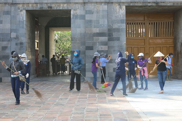 Chiều 29/4, hơn 700 cán bộ, nhân viên, người lao động thuộc Trung tâm Bảo tồn Di tích Cố đô Huế đồng loạt ra quân tổng vệ sinh môi trường, tiến hành tiêu độc, khử trùng các điểm di tích, chuẩn bị cho sự kiện mở cửa trở lại đón khách tham quan từ sáng 30/4.