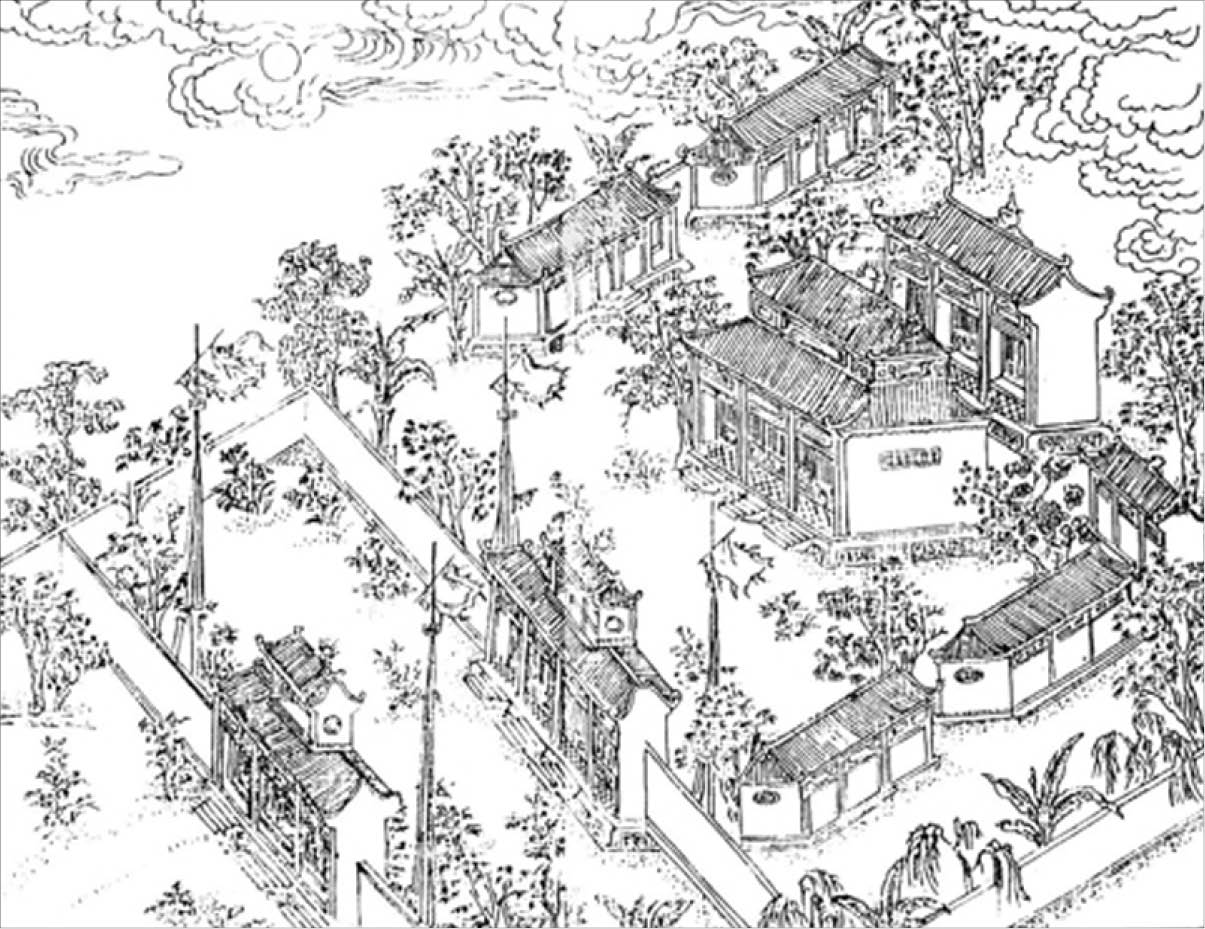 Cảnh chùa Giác Hoàng được vẽ và in trong tập Ngự đề đồ hội thi tập (Dẫn từ Website Trung tâm BTDTCĐ Huế)