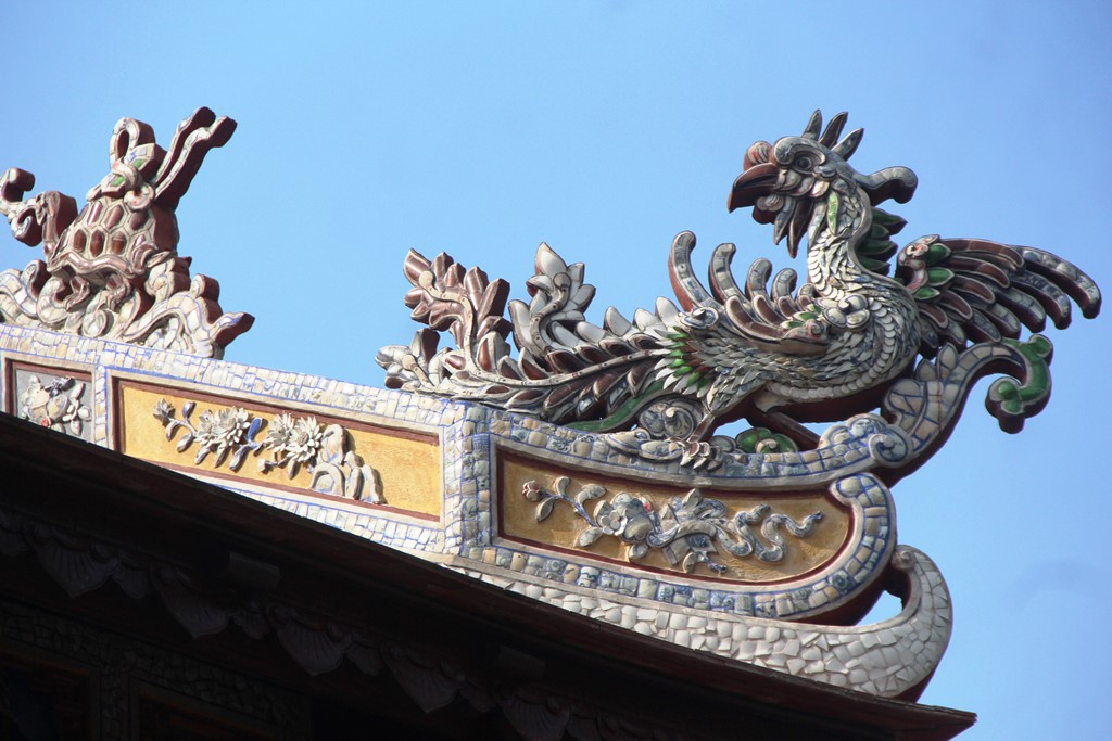 Hoa văn trang trí trên mái được làm mới rất tinh xảo