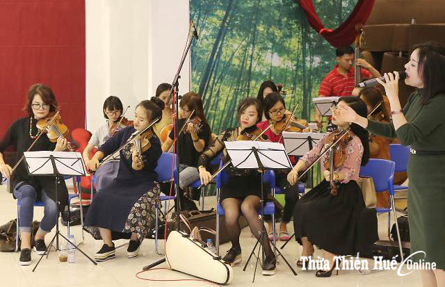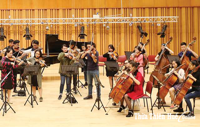 Tập luyện cho chương trình “Mùa đông xứ Huế” tại Nhà hát lớn Hà Nội