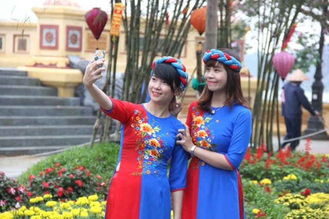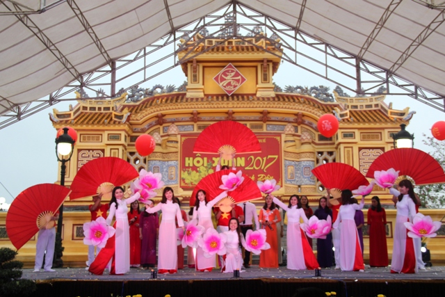 Hội Xuân Đinh Dậu – 2017 không chỉ là điểm hẹn ngày xuân của người dân Huế mà còn thu hút khá nhiều du khách ngoại tỉnh, khách nước ngoài đến tham dự. Hầu hết du khách có mặt đều cảm thấy thích thú trước không gian xuân nơi đây và không quên chụp những kiểu ảnh kỷ niệm. Chị Giulia, quốc tịch Tây Ban Nha phấn khởi: “Đây là lần đầu tiên tôi đến Huế. May mắn được chứng kiến hội xuân tôi rất thích. Trước khi đến Việt Nam, bạn bè tôi khuyên tôi hãy tìm về các làng quê. Bây giờ tham dự hội xuân này, tôi cũng được chứng kiến một phần nào khung cảnh làng quê. Hy vọng sang năm tôi sẽ quay lại và hòa mình vào Tết cổ truyền của các bạn”.
