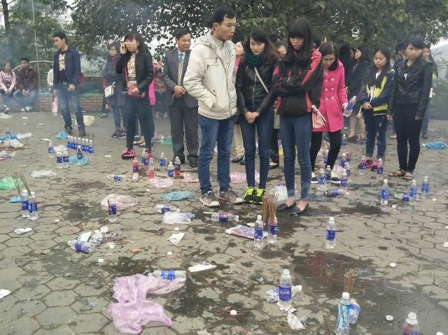 Chị Hoa, du khách đến từ TP. Hồ Chí Minh lắc đầu ngao ngán: “Ý thức của một số người kém quá. Mà nào có phải làm gì to tát đâu, chỉ thu dọn vỏ nilon, chai nước mình mang tới bỏ vào thùng rác mà cũng không làm. Cảm tưởng như, họ đến đây chỉ để cầu lộc cho mình, còn rác... ai dọn mặc kệ”. Xung quanh, một số người tự do hành nghề bói toán, bày bán bùa, vòng đeo tay cầu may với giá gấp đôi, gấp ba...
