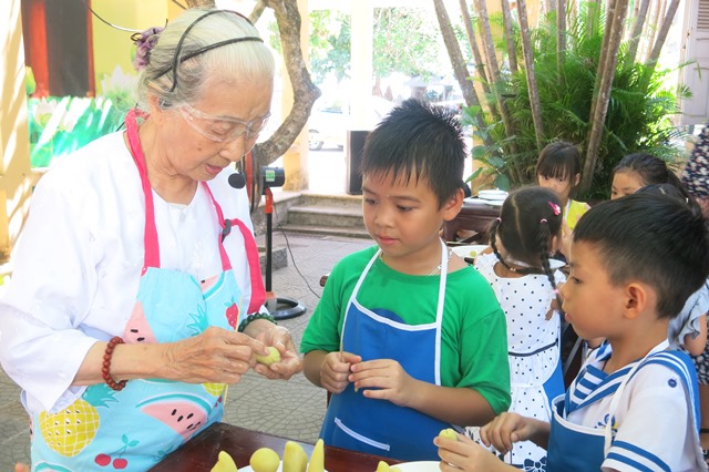 Nghệ nhân ẩm thực Mai Thị Trà hướng dẫn làm bánh cho thiếu nhi
