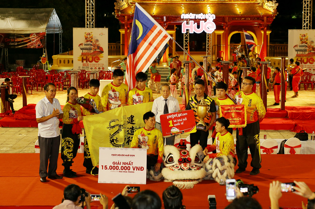 HNN.VN - Tối 8/9, Ngày hội Lân Huế 2019 chính thức khép lại bằng các màn biểu diễn ở phần thi “Nhất Địa bửu”. Đội lân đến từ Đảo quốc sư tử Singapore đã xuất sắc giành giải Nhất.