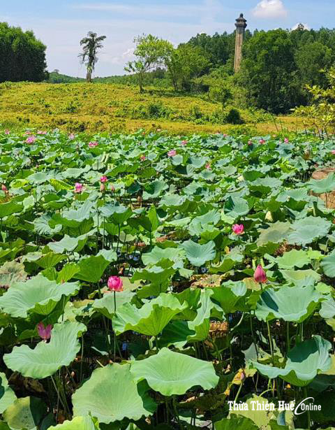 Sen xanh ngát bao quanh mặt nước lăng vua Gia Long