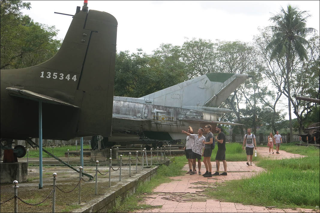 Du khách tham quan trưng bày ngoài trời tại Bảo tàng Lịch sử