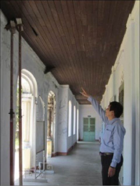 Có mặt tại di tích Quốc Tử Giám một ngày cuối tháng 7, chúng tôi không khỏi ngỡ ngàng trước tình trạng rệu rã của các dãy nhà tại đây. Nhiều nơi, hệ thống kèo gỗ phải chống đỡ tạm bằng cột sắt. Trong các kho lưu trữ, từng đống hiện vật được che chắn để phòng nước dột. Một số hiện vật phải để trên hành lang vì thiếu kho lưu trữ. Ông Cao Huy Hùng, Giám đốc Bảo tàng Lịch sử cho hay, đầu tháng 6 vừa qua, sau các đợt mưa lớn, nước dột từ mái di tích tràn lênh láng các dãy nhà được sử dụng để trưng bày, bảo quản hiện vật.