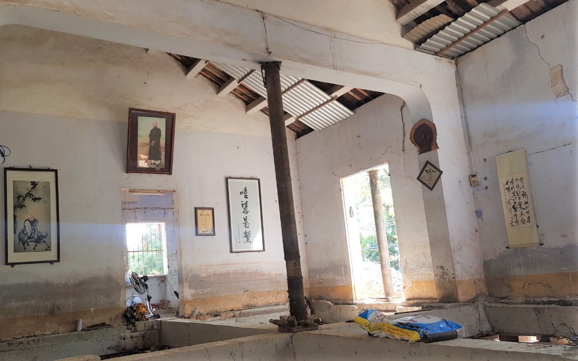 Bệ thờ bên trong ngôi chánh điện cũ của Quốc tự Diệu Đế vẫn còn nguyên vẹn trong quá trình dịch chuyển