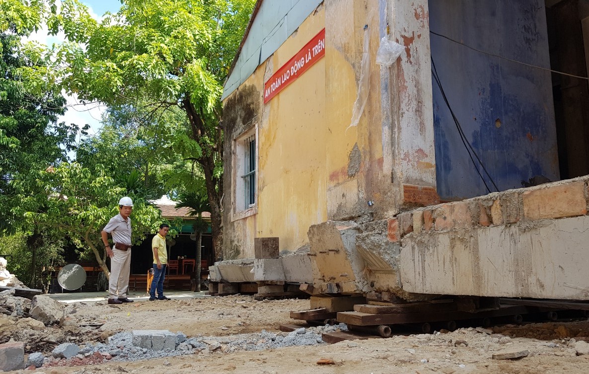 Đến thời điểm này đã kéo được 4m, quá trình kéo ngôi chánh điện cũ lùi sau 18m sẽ mất khoảng 5 ngày