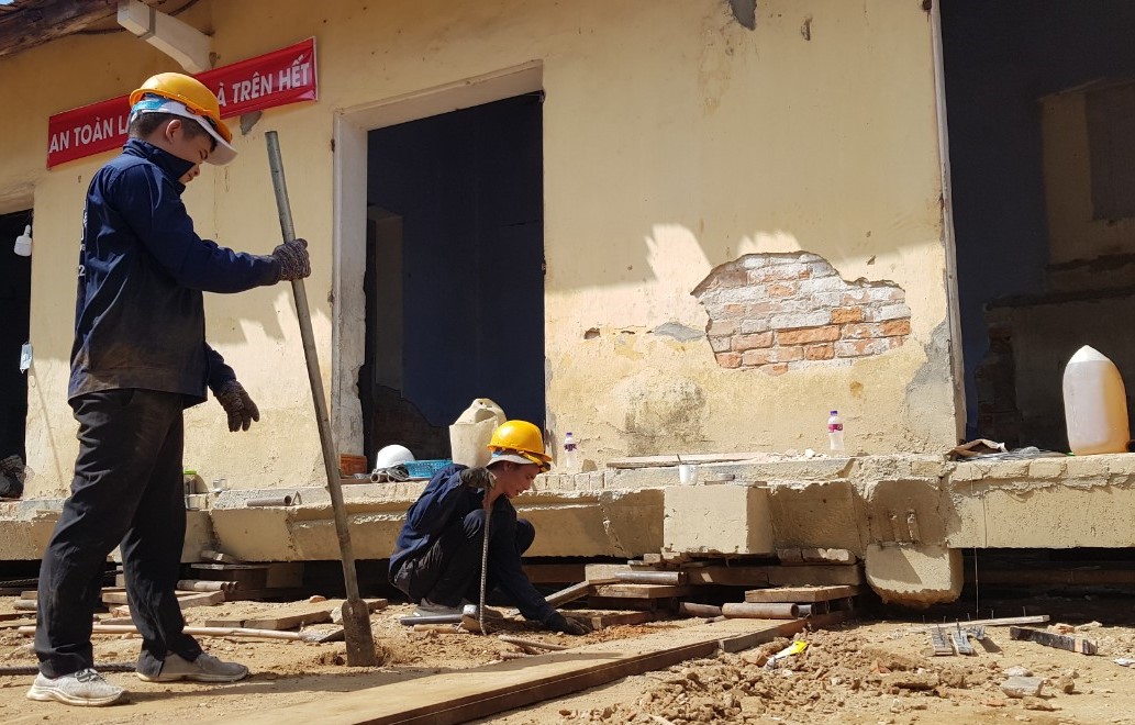 Theo ông Cư, quá trình khảo sát có rất nhiều phương án được đưa ra, bằng mọi giá phải giữ được nguyên trạng chánh điện cũng như các bệ thờ bên trong. Phương án cuối cùng là đào sâu xuống phần móng và cho đổ hệ đà bằng bê tông, kết nối với sắt thép để tạo nên kiên cố. “Quá trình này được thực hiện từng đoạn khoảng 1-1,2m. Tổng hệ đà được đổ lên đến 180m, trong hơn 2 tháng liên tục”, ông Cư nói.
