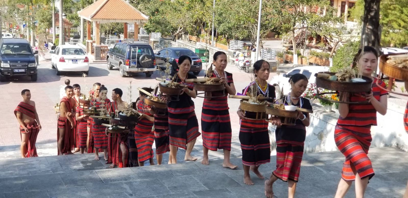 Vào lễ hội, các lễ vật lần lượt được dâng cúng theo thứ tự...