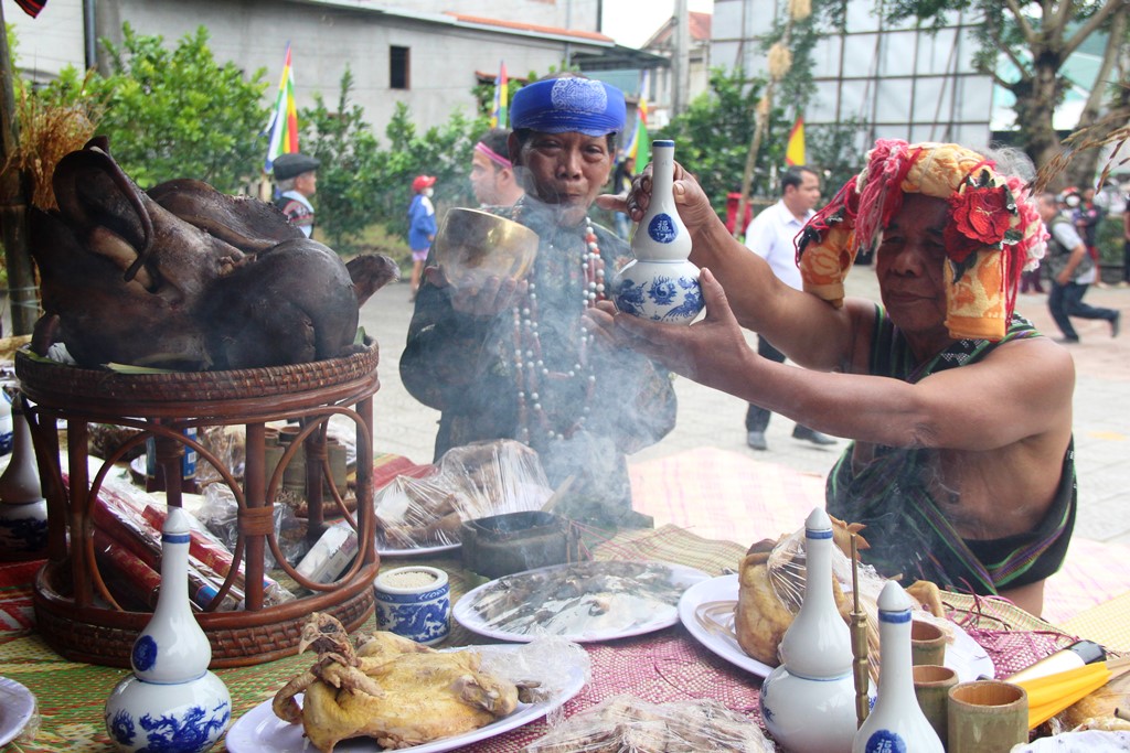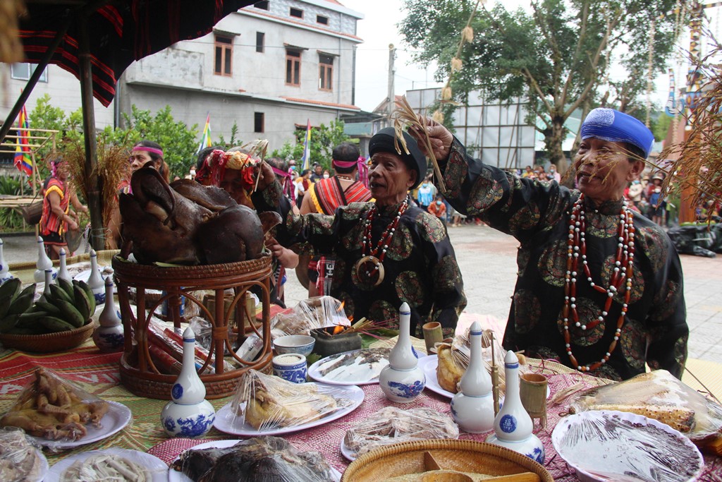 Già làng dâng lên thần linh những món ngon truyền thống của đồng bào mình