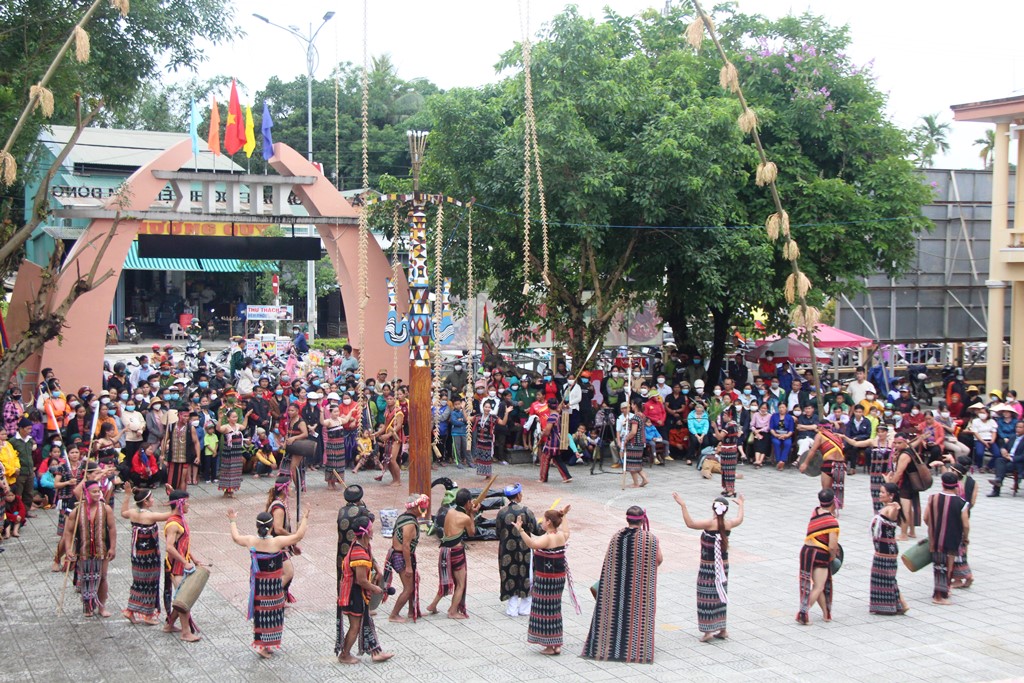 Người đồng bào Cơ Tu sau khi thực hiện các nghi lễ tâm linh, đã cùng nhau nhảy các điệu nhảy truyền thống dưới tiếng bập bùng của cồng chiêng và mời du khách gần xa thưởng thức những món ngon của đồng bào mình.