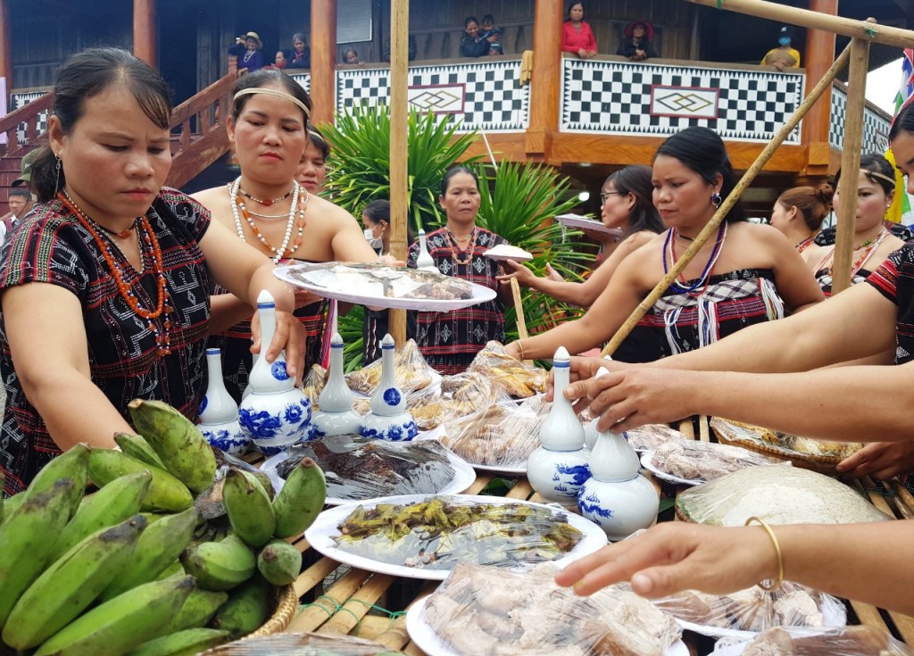 Sau phần nghi lễ, đồng bào Cơ Tu dọn các vật phẩm mời bà con, du khách cùng thưởng thức