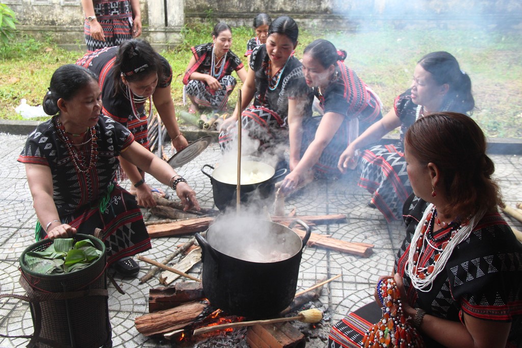 Từ sáng sớm, chị em người đồng bào Cơ Tu đã có mặt để chuẩn bị các lễ vật cho lễ hội