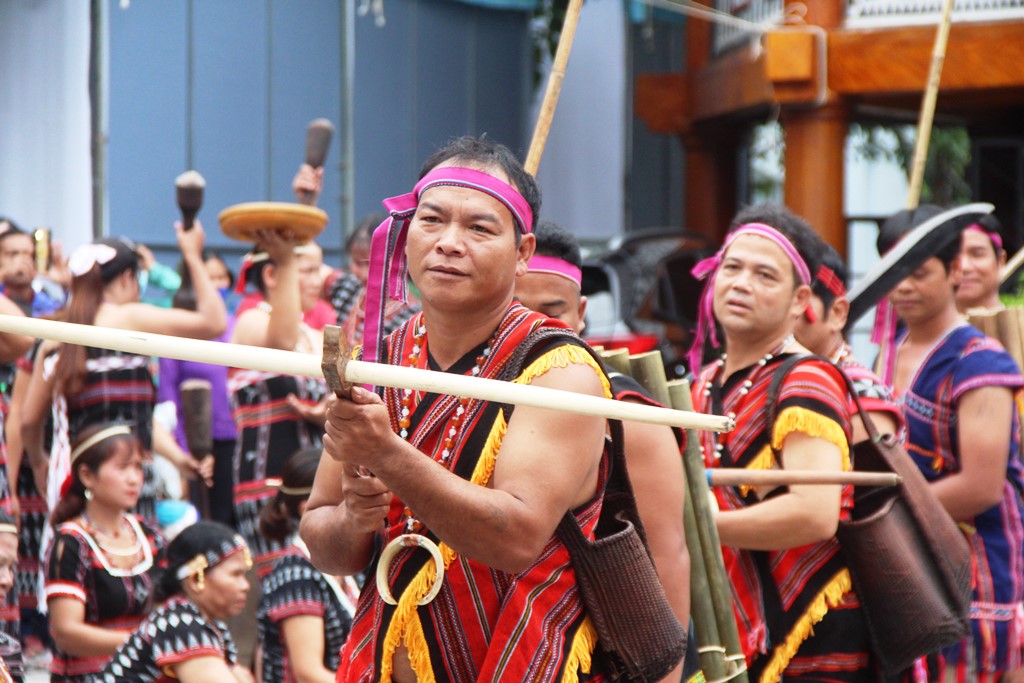 Những chàng trai mang theo giáo, những cô gái mang theo gùi trong nghi lễ
