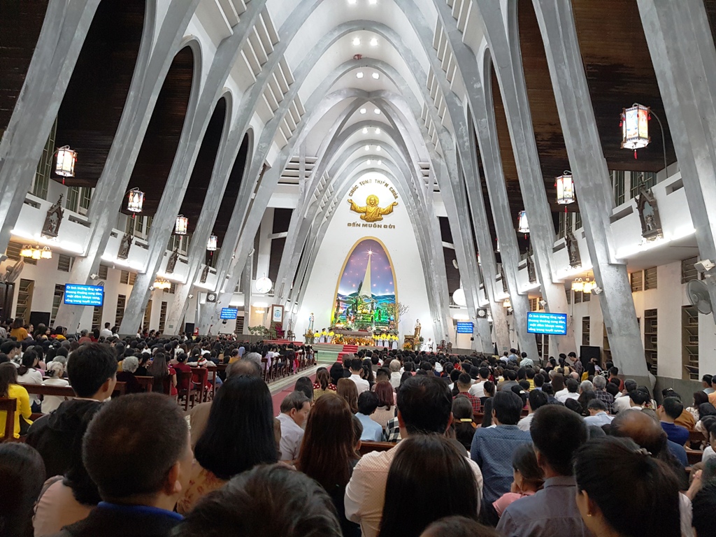 Phía trước sân nhà thờ Phủ Cam chật kín người