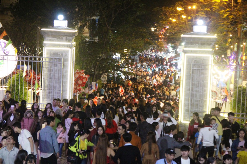 Dòng người đi bộ kéo dài từ đường Nguyễn Trường Tộ về nhà thờ Phủ Cam để đón Giáng sinh