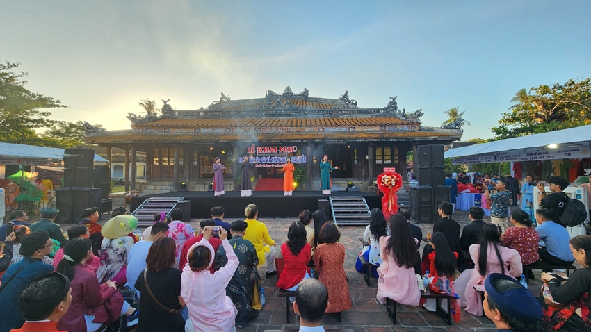 Chiều 7/7, tại không gian Di tích Quốc Tử Giám diễn ra buổi khai mạc không gian trưng bày và thao diễn áo dài nằm trong chuỗi sự kiện tuần lễ áo dài cộng đồng Huế 2023. Sự kiện do Bảo tàng Lịch sử tỉnh phối hợp cùng Hội Tem, Thư viện Tổng hợp tỉnh, Hiệp hội May mặc và Hiệp hội Nón lá tỉnh tổ chức.