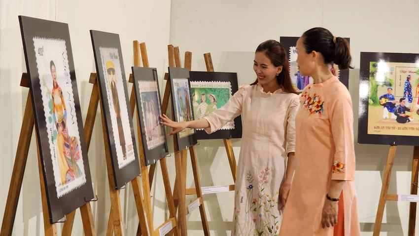 | Những bộ tem về áo dài cũng được triển lãm trong dịp này |