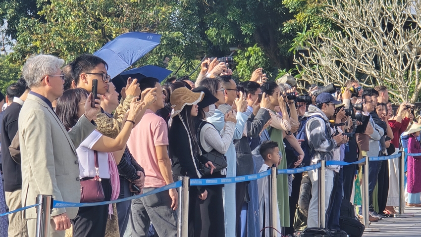 Theo dõi buổi lễ, chị Nguyễn Thu Trang (du khách đến từ Hà Nội) chia sẻ đây là lần đầu tiên chị được chứng kiến một nghi lễ cung đình được tái hiện ngay tại Đại Nội. “Đây là trải nghiệm rất đặc biệt, giúp tôi hiểu thêm về văn hóa Triều Nguyễn và nét đẹp Tết truyền thống của Huế”, chị Trang nói.