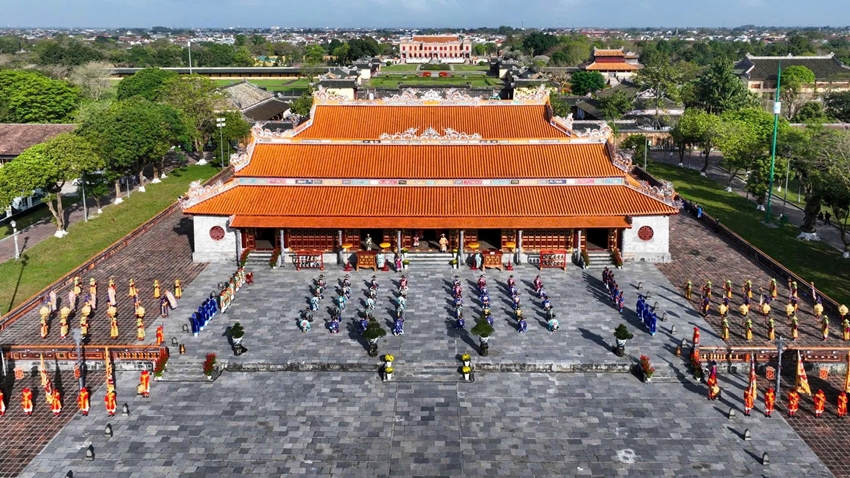 HNN.VN - Sáng 11/2 (nhằm ngày 24 tháng Chạp năm Ất Tỵ), tại sân Đại triều điện Thái Hòa (Đại Nội Huế), Trung tâm Bảo tồn Di tích Cố đô Huế tổ chức chương trình tái hiện lễ thiết triều Nguyên đán của triều Nguyễn. Hoạt động thu hút đông đảo người dân và du khách đến tham quan, góp phần tái hiện không khí Tết cổ truyền trong không gian Hoàng cung xưa.