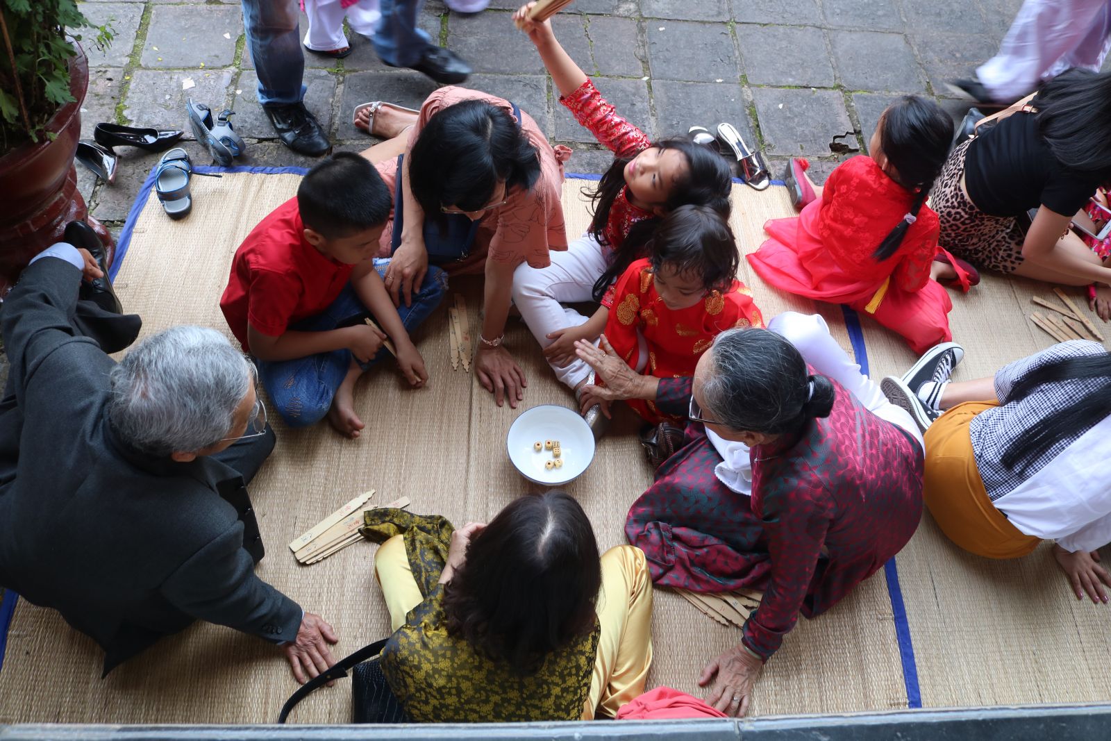 Ông Hoàng Cảnh Phùng (đến từ thành phố Hồ Chí Minh) vừa ngồi nghỉ chân, hóng mát ở sân sau điện Thái Hòa, vừa ngóng đợi đến 10h để được xem các trò chơi cung đình. Ông Phùng làm rể đất Huế. Ông bảo, không về quê vợ dịp Tết thì thôi, còn về thì kiểu chi cả nhà cũng vào thăm Hoàng cung Huế một lần. “Vào Hoàng cung dịp này, đi cả nhà vui vẻ không những được miễn vé, mà trẻ con cũng có nhiều trò để chơi, nhiều hoa đẹp để chụp ảnh. Khung cảnh này, ngày thường không dễ gì có được”, ông Phùng nói.