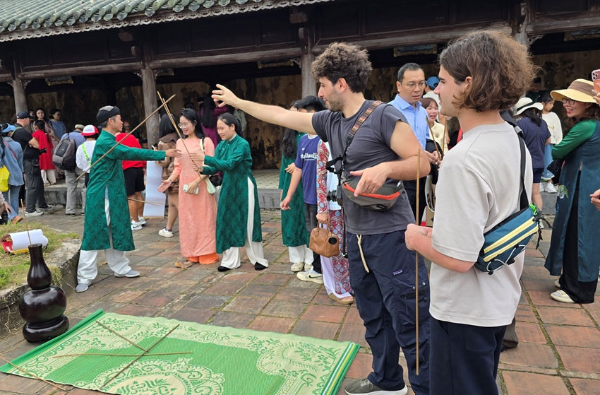 Đại Nội Huế còn mang đến cho du khách nhiều trải nghiệm tương tác thú vị. Ở khu vực phía sau điện Thái Hòa, những trò chơi cung đình từng phổ biến trong hoàng cung xưa được tái hiện, thu hút đông đảo du khách tham gia.