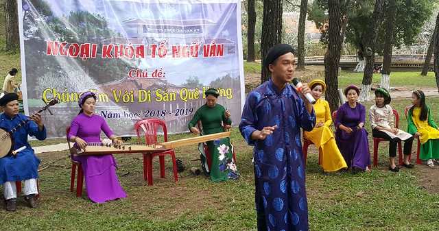 HNN.VN - Trong khuôn khổ hoạt động ngoại khóa “Chúng em với di sản quê hương” do Trường THCS Chu Văn An tổ chức chiều 13/1 tại lăng Tự Đức, CLB Ca Huế đã tổ chức chương trình giới thiệu ca Huế cho các em học sinh.